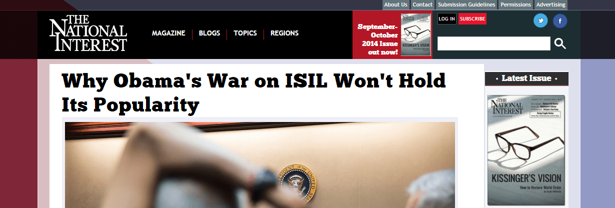 With the prime-time announcement of his campaign to destroy ISIL, President Obama is staking his presidency in a place he certainly never intended. Obama launches his campaign with what appears to be a reasonable level of public support. A September CNN/ORC poll found that roughly 75 percent of the public supports airstrikes against ISIL, a figure that may climb a bit higher in the wake of Obama’s address to the nation on September 10. This support compares relatively favorably with most U.S. military interventions of the past (see Gallup’s list of public support by major intervention here), closer to initial levels of support for Iraq and Afghanistan, for example, than to the invasion of Panama or the Kosovo air war.