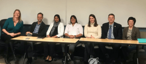 Last week, adjunct professor Ashley Grant, a lead biotechnologist at the MITRE Corporation, held a career panel at the Schar School of Policy and Government at George Mason University as part of her course on Global Health Security Policy. To highlight the different paths that graduate students in the Biodefense program can take in the health security field, Professor Grant convened a diverse panel of health security practitioners to discuss their jobs and the skills they have needed to succeed. The panel included professionals from a variety of different backgrounds ranging from local health providers to Federal employees. Students in the Schar School’s Biodefense Graduate Program were able to ask the panelists about the challenges of moving from a technical career path into science policy and opportunities for internships. The panel included Stuart Evenhaugen of the Assistant Secretary for Preparedness and Response (ASPR)’s Strategy Division in the Department of Health and Human Services (HHS); Syra Madad, the Senior Director of System-Wide Special Pathogens Program at NYC Health + Hospitals; Halley Smith, a program lead with the U.S. Department of State Cooperative Threat Reduction Program, on detail from Sandia National Laboratories Global Chemical and Biological Security Program; Sapana Vora, the Deputy Team Chief for the U.S. Department of State’s Biosecurity Engagement Program (BEP) and Iraq Program in the Office of Cooperative Threat Reduction (CTR); and Malaya Fletcher, a Lead Scientist at Booz Allen Hamilton in Washington, DC. The panel also included LTC Justin Hurt a CBRN/WMD Organizational Integration Officer in the Army G-3/5/7 Office who is currently enrolled in the Biodefense PhD program. As biodefense graduate student Michael Krug noted, “The panel was immensely valuable in providing detailed insights and experiences into each of the panelist’s unique career paths. Emphasizing the demand for multi-disciplined approaches, as well as active communication to answer the many health security questions facing the world.”
