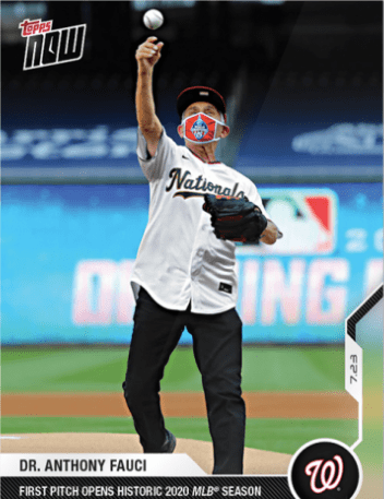 Though Dr. Fauci’s first pitch at the kickoff of the historic 2020 MLB Season was a flop, his loyal fan base was unfazed. Fauci is the longtime director of the National Institute of Allergy and Infectious Diseases (NIAID) and a key leader in the US COVID-19 response. He threw the first pitch at the seasoning opener game, the Washington Nationals versus the New York Yankees in late July. To commemorate the moment, a Topps baseball card showing a masked Fauci mid-pitch was released. The Fauci card is now the bestselling card in the history of the company’s collection of limited-edition cards, ToppsNow. ToppsNow cards are only available to purchase for 24 hours and over 51,000 Fauci cards were sold.