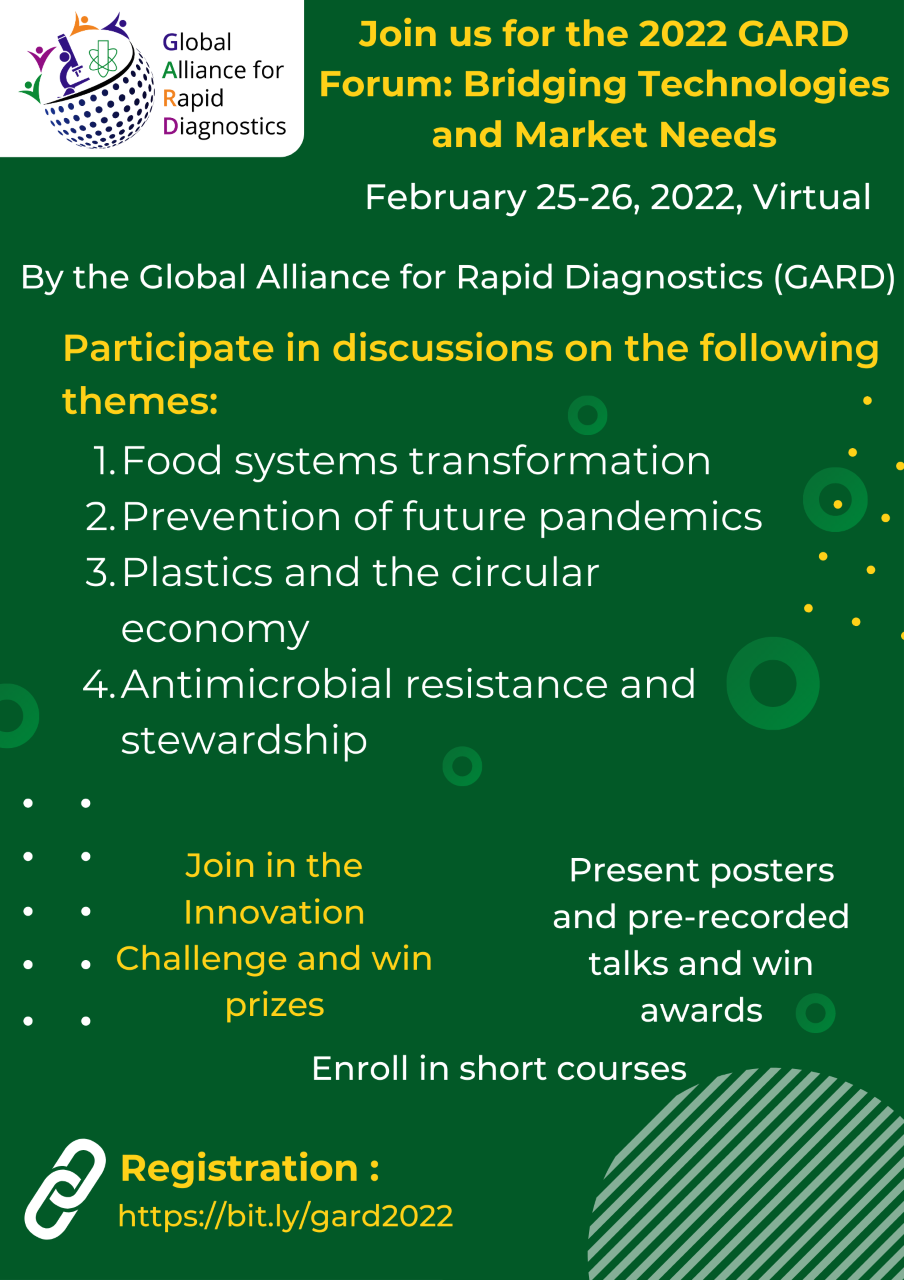 Free registration is now open for the “2022 Innovation Forum: Bridging Technologies and Market Needs,” held virtually on February 25-26, 2022. It is sponsored by the Global Alliance for Rapid Diagnostics (GARD), a multidisciplinary group of researchers and practitioners from around the world committed to improving global health by reducing the spread of infectious diseases through early diagnosis. The focus of this symposium is to serve as a marketplace where innovative technologies can match the customers’ needs. Through this symposium, you will have the opportunity to meet and learn from people worldwide so that we can come together to develop solutions to help those in low-resource populations, prevent future pandemics, and save lives. Register at this link.