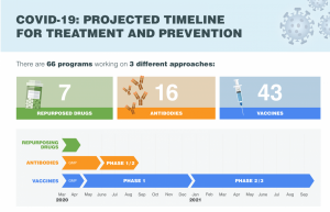 There’s been a lot of talk regarding the use of malarial drugs, hydroxychloroquine and chloroquine, as treatments for COVID-19 following President Trump’s comments in recent press conferences. Unfortunately, this isn’t aligning with medical experts. “The study referenced by Trump, and other studies done so far of potential treatments for Covid-19, are small and hastily designed even by the standards of Phase 1 studies.” The comments/tweets by President Trump have been concerning many as supplies of the drugs, often used to treat lupus, are starting to take a hit and the suggestion of efficacy encourages misuse, which resulted in the death of a man in Arizona taking a form of chloroquine. In terms of developing treatment and prevention MCMs, SynBioBeta has recently partnered with Leaps by Bayer to develop a great visual timeline for what this process looks like.