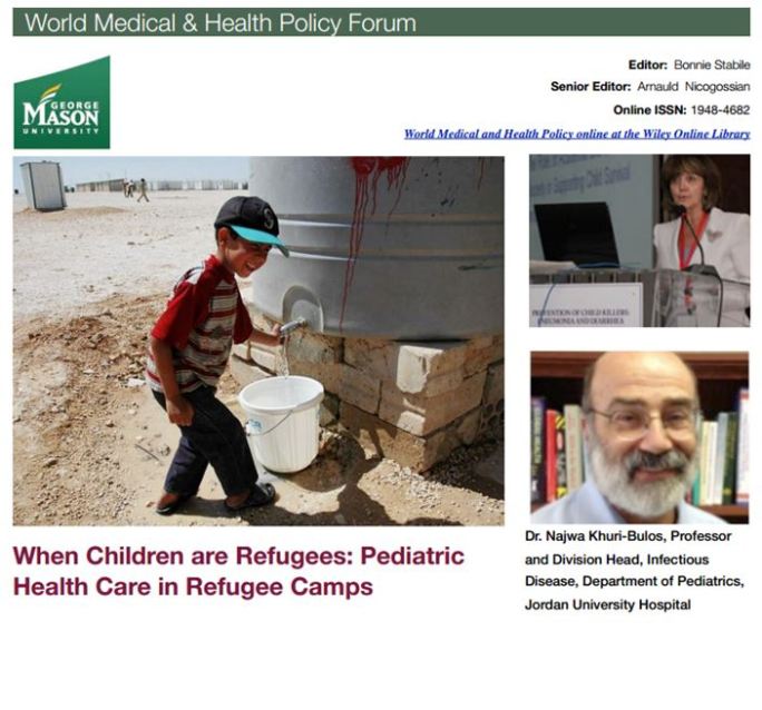 Co-sponsored by the World Medical & Health Policy journal, the Policy Studies Organization, the Center for International Medical Policy and Practice at the School of Public Policy and the Biodefense Program in the Department of Public and International Affairs at George Mason University. Dr. Khuri-Bulos, has written and spoken on “The Role of Immunization in Achieving the Millennium Development Goals,” and is responsible for the immunization program Jordan established for children living at Zaatari. Dr. Waldman, former Technical Director of the USAID-funded BASICS program, a global child survival effort, is President of the Board of Directors of Doctors of the World-USA.