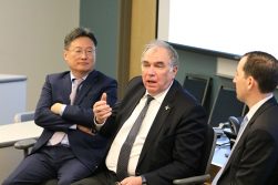 On November 14th, the GMU Schar School of Policy and Government hosted a panel conversation on the intersection of nuclear energy and security. “Students and faculty members from the Schar School of Policy and Government, as well as representatives from government agencies and nongovernmental organizations, joined Brent Park, Deputy Administrator for Defense Nuclear Nonproliferation at the U.S. Department of Energy’s National Nuclear Security Administration, and Mikhail Chudakov, Deputy Director General for Nuclear Energy at the International Atomic Energy Agency (IAEA)” to have frank conversations about the future state of nuclear energy and how to address “energy poverty”. Moderated by GMU biodefense professor and graduate program director Dr. Gregory Koblentz, the group discussed the marriage between these two nuclear components and that we ultimately need to continue having these conversations. As Dr. Koblentz noted, “Given the growing demand for carbon-free energy and the dynamic geopolitical situation, it was very informative to hear about how the IAEA and the United States work together to promote safe and secure nuclear energy.”