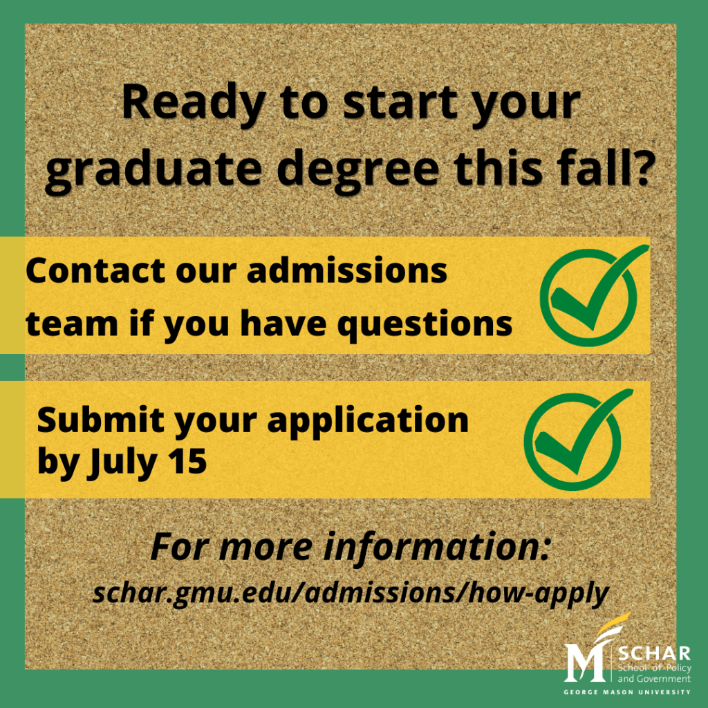 The Schar School PhD programs will be holding a virtual open house on Wednesday, October 30 from 6-7:30 PM. Please join Dr. Gregory Koblentz, director of the Biodefense Graduate Program, to learn more about the Biodefense PhD program and ask any questions you may have. Register here.